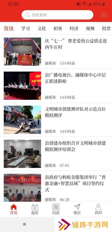 汝阳融媒app通过阅读的新闻媒体资讯,可以快速掌握到本地新闻媒体动态,最新的新闻媒体变化及时知道。还提供各种投票、拍客、学习等服务,可以将身边发生的趣事记录下来,在线发布视频,可以与本地好友在线互动交流,分享更多生活趣事,还提供各种生活服务、政务服务等便民服务。