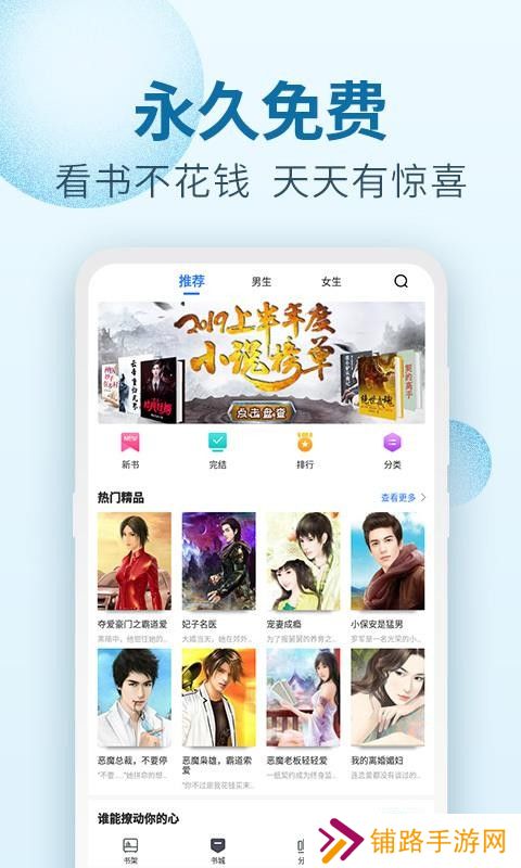选择男生或者女生频道,男女喜欢看的小说可以直接寻找