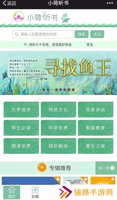 小荷听书使用方法1、进入app以后,用户就可以在这里轻松的搜索想要收听的内容了