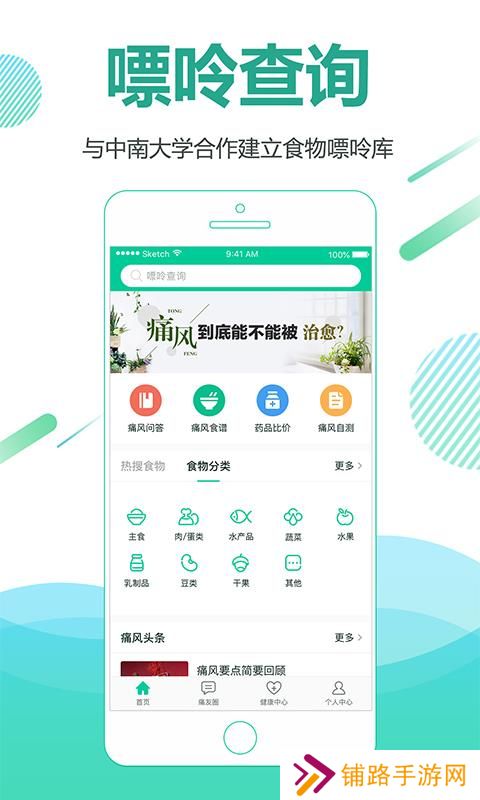 别痛风使用方法1、进入首页,即可选择热搜食物、食物分类、痛风头条等相关信息查询