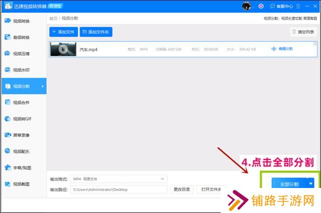 步骤四 编辑好视频片段之后,点击【全部分割】,等待一会儿即可完成。完成的视频文字自动生成文件夹保存在桌面。