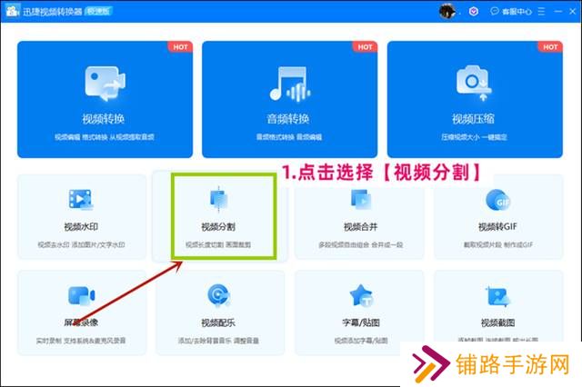 步骤一 首先打开电脑桌面的【迅捷视频转换器】,进入首页后,我们可以看到有许多功能选项,找到【视频分割】的功能,点击选择。