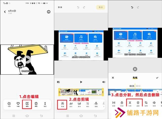 我们打开手机相册中需要剪辑的视频片段,点击【编辑】-【剪辑】选项,就进入到视频简洁页面了。我们播放视频到需要剪辑的位置暂停,点击【分割】,分割好之后,我们直接点击【删除】即可删掉中间不要的部分。