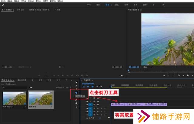 我们在使用PR进行剪辑的时候,首先就是导入我们的视频文件,并将其拖动到时间轴面板上。拖动好之后,接下来点击【剃刀工具】,在需要分割的地方点击分割就可以实现视频的分段了。