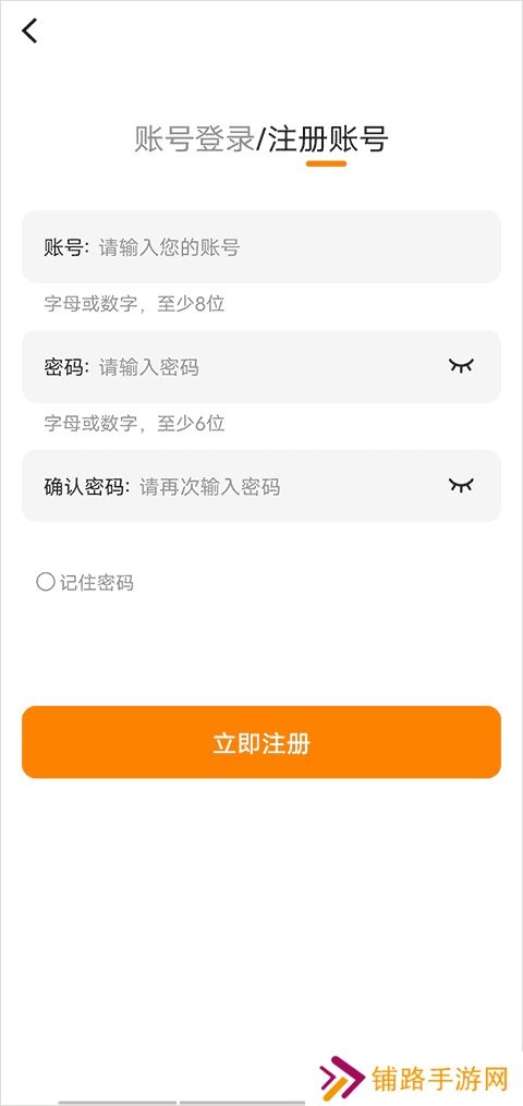 2、点击“注册账号”输入账号、密码点击立即注册即可。