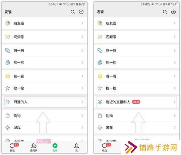 二、发现页改版打开微信点击底部的【发现】,将会看到【附近的人】变成【附近的直播和人】,新增了视频和直播功能,里面的视频和直播,都来自于视频号哦。
