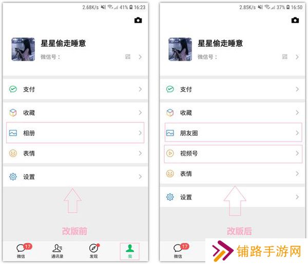 微信8.0版本手机版功能一、我的界面改版最明显的变化,就是微信右下角的【我】,可以看到【相册】被改成【朋友圈】,如果你创建过视频号,那么这里还会显示你的个人视频号入口。