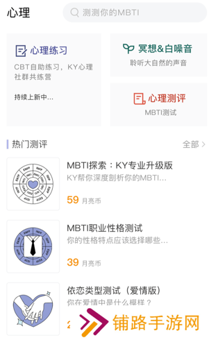 月食研发了一系列自助工具,包括CBT、冥想、测评。