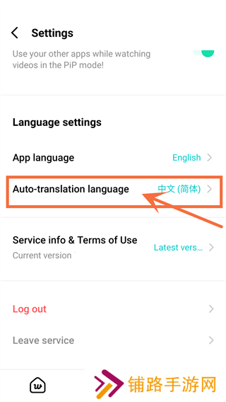 3、向上滑动屏幕找到“Language setting”-Auto-translation language