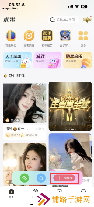 求带app介绍求带app是一款集游戏陪玩和聊天交友为一体的软件,它覆盖了众多热门游戏,如英雄联盟、绝地求生、王者荣耀等。这款app可以为用户提供全程连麦陪练游戏的服务,满足个人开黑上分的高需求。同时,根据个人的风格以及游戏技术,app会为用户匹配高颜值的游戏大神,让大神带你在游戏内肆虐他人,给你不一样的游戏体验。