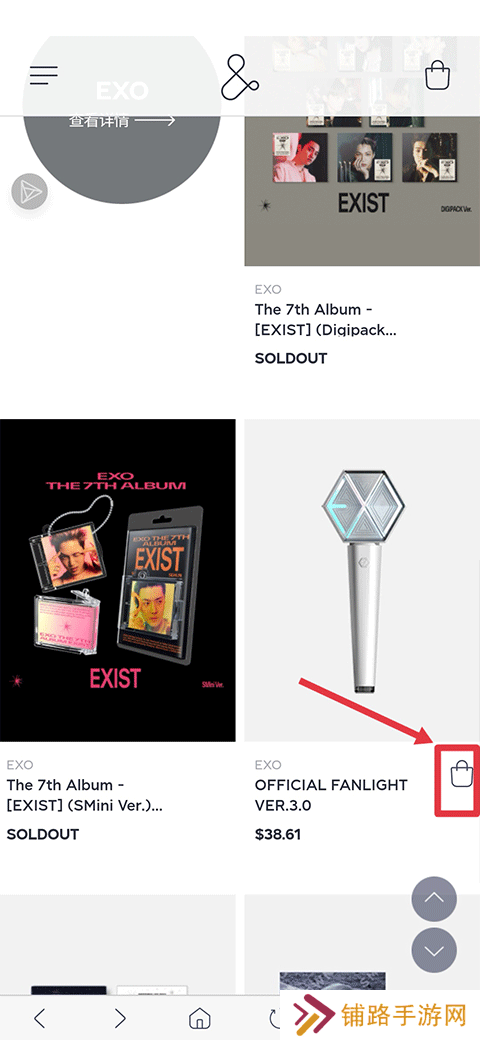 2、点击后就会显示exo所有在售商品,选择要购买的商品后点击购物按钮