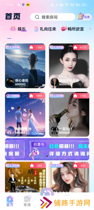 2、首页有着各种直播内容和频道等你来自由选择,但是这个好像需要抢麦