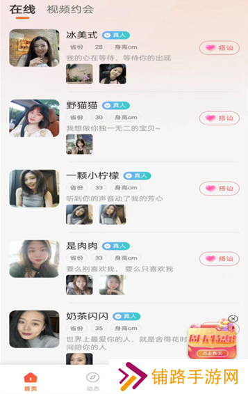 2、进入首页你可以自由的去选择不同小姐姐和小哥哥等你认识,用起来还是不错的