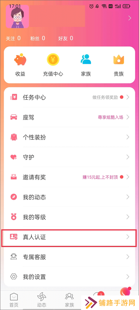 秀宝宝怎么实名1、从【首页】切换到【我的】界面,点击下方的“真人认证”。