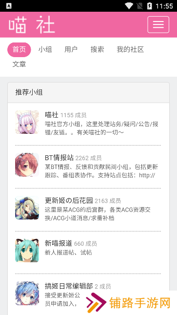 喵社app是一款专为喜欢二次元的朋友们提供的交流社区软件,软件内有很多的小组社区可以供用户加入讨论,同时还会不定时的分享一些二次元相关的资源供用户去体验下载,用户还能够在软件内尽情的抒发自己的感想,喜欢的朋友们快点来下载吧!