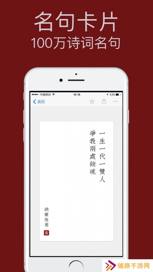 【名句卡片】精选数万条诗词名句,卡片式切换翻阅,可自由制作卡片,简繁切换、字体切换。