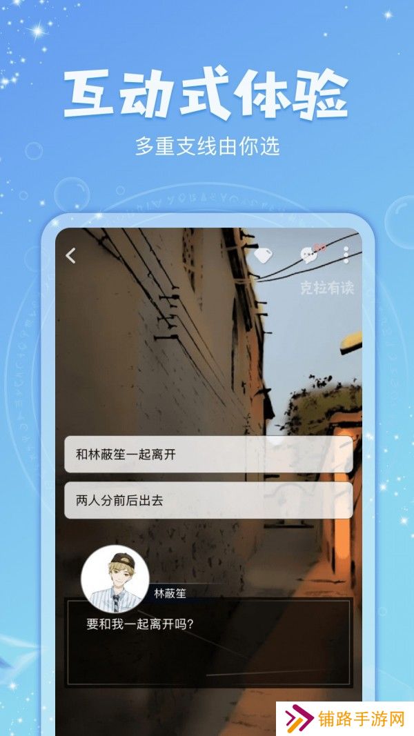 独特的对话式&互动式克拉克拉小说,点击屏幕get下一条剧情,甚至你还可以“穿”成故事里的角色,自己支配剧情走向。新鲜刺激的上头体验,你永远不知道下一秒发生什么……