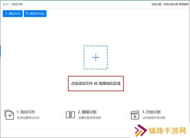 选择好操作功能之后,点击上传需要分割的视频文件。可以直接点击添加文件,也可以直接拖动上传文件。
